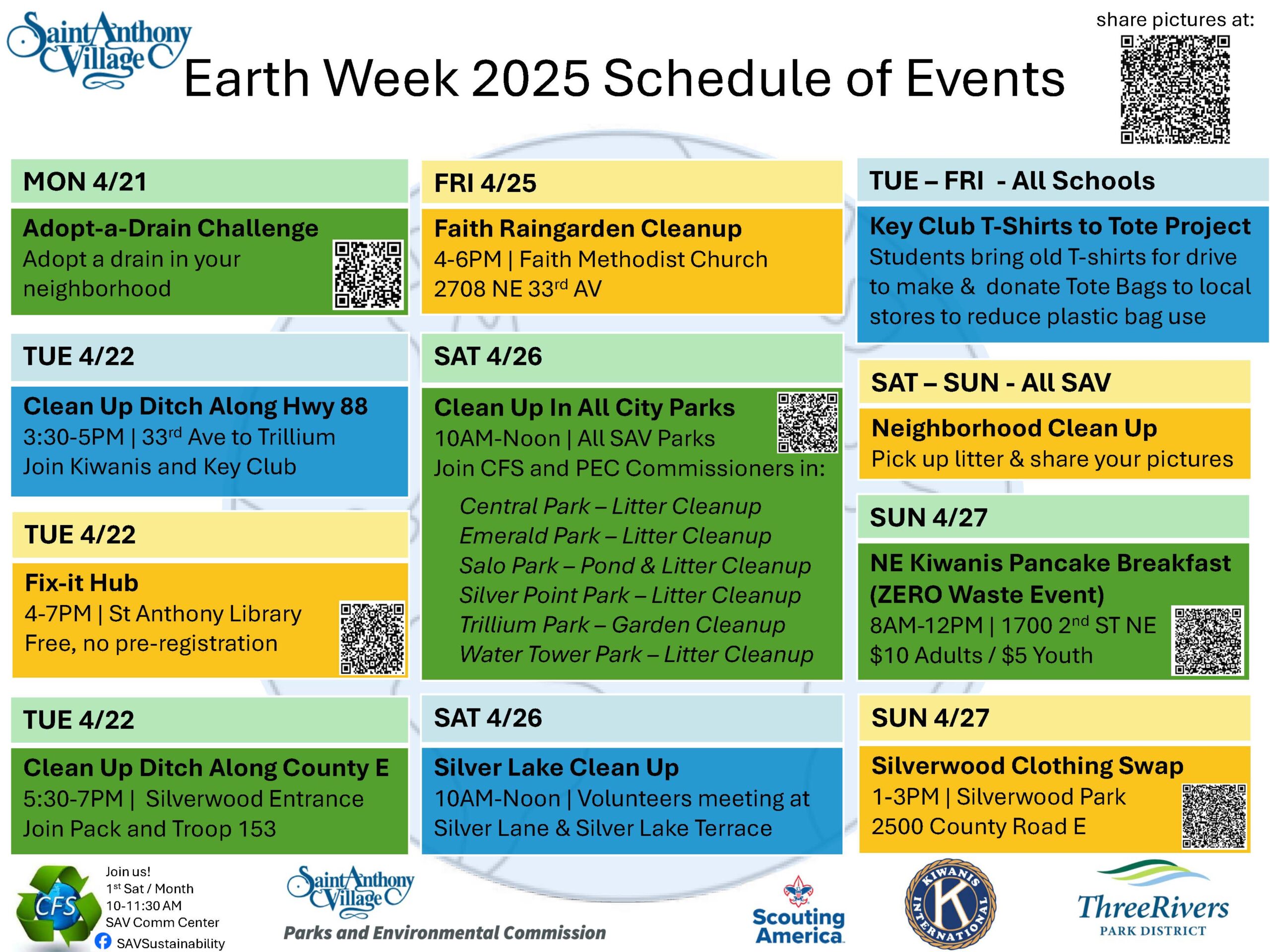 There are also a variety of local/area activities for Earth Week. Please see the image below to learn more about these events.