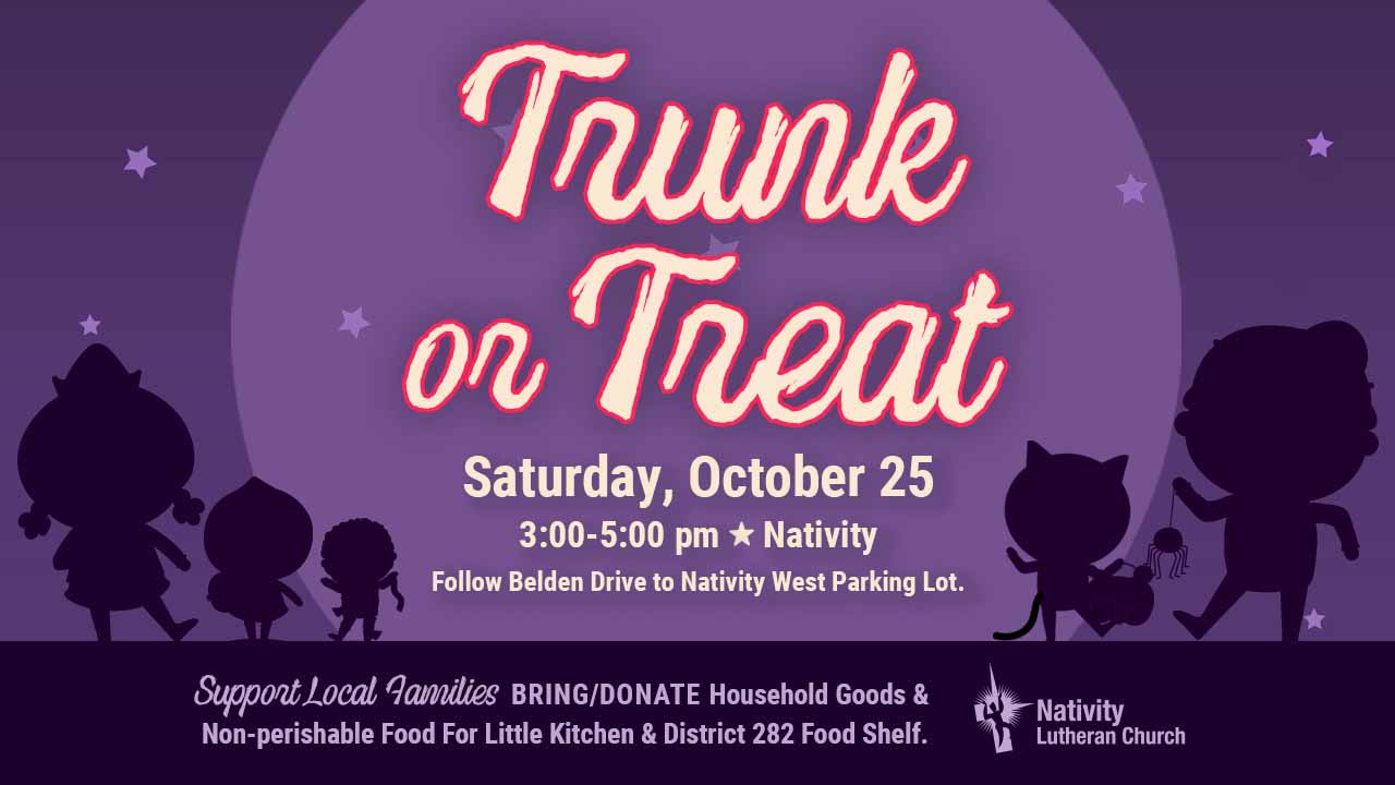Saturday, Oct. 25, 3:00-5:00 pm | West Parking Lot off Belden Dr. Join us for an afternoon of fun, treats and costumes! Everyone is welcome, so be sure to invite […]