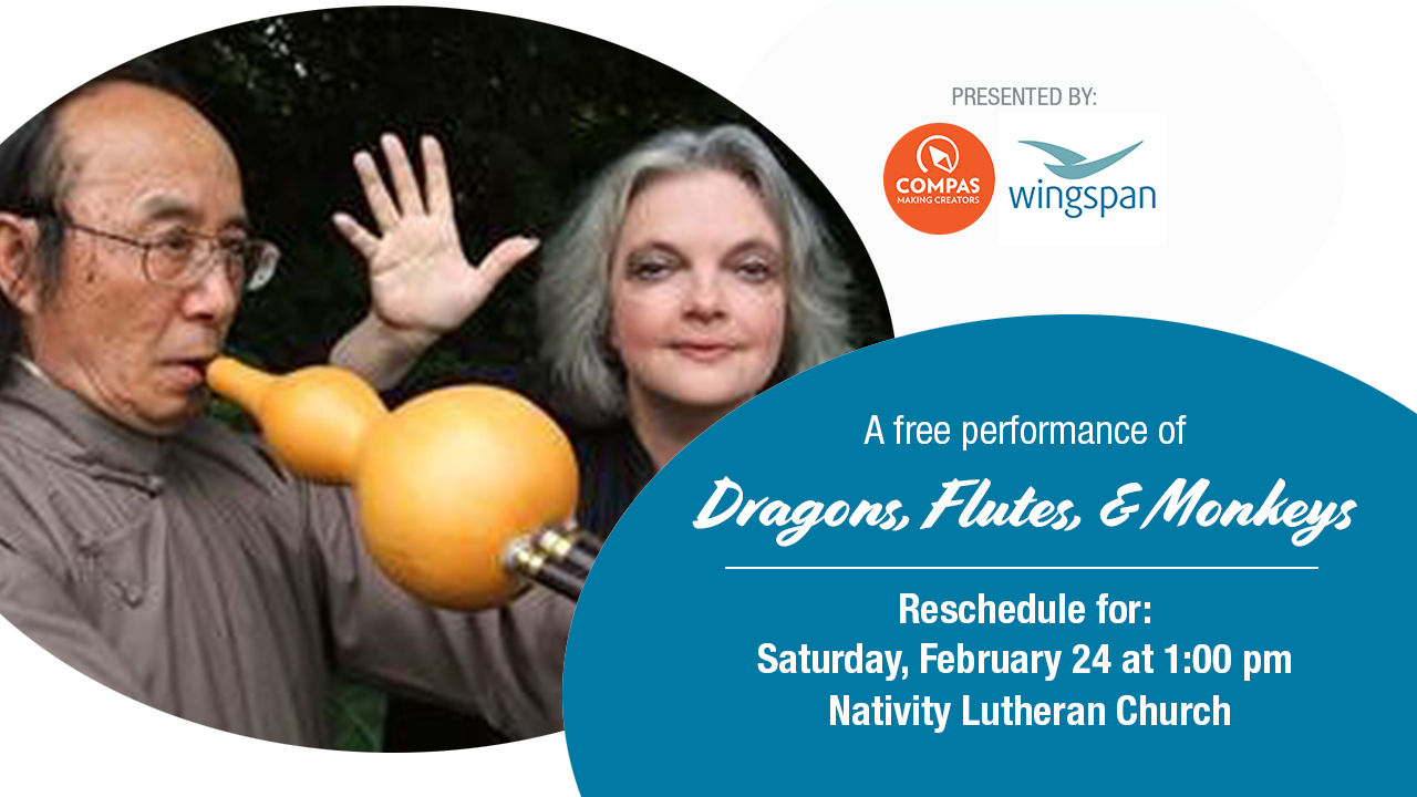 Acclaimed flutist and composer Zhang Ying and storyteller Rhonda Lund bring China’s ancient musical and storytelling traditions into vivid new light. Zhang Ying began his professional musical career at age 16, playing the Chinese bamboo flute in a traditional orchestra. Now he plays and composes on eleven different woodwind instruments from across China. Rhonda Lund is an experienced storyteller, actor and director. Specializing in folktales and masks, she has researched source material on multiple trips to China and India, and also Borneo, Singapore, Mexico, Spain, Morocco and the Czech Republic.